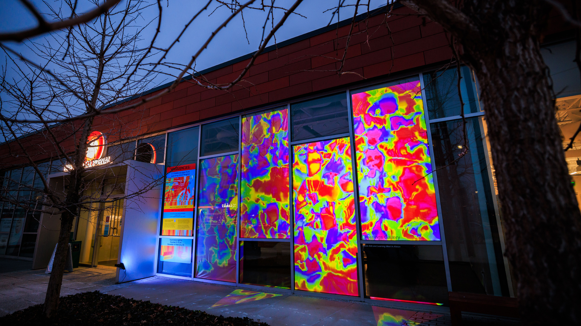 FREQUENCIES is a crowdsourced video mural featuring the sights and sounds of a community, sourced directly from the people who call it home. Filtered through and remixed by Allison Tanenhaus (glitch artist) and Maria Finkelmeier (sound artist), the result becomes a joyful, celebratory experience lifting up the everyday beauty of our surroundings.
