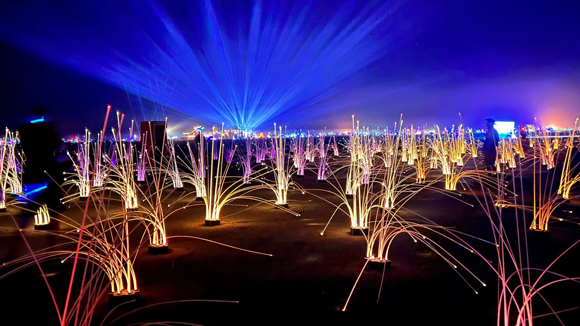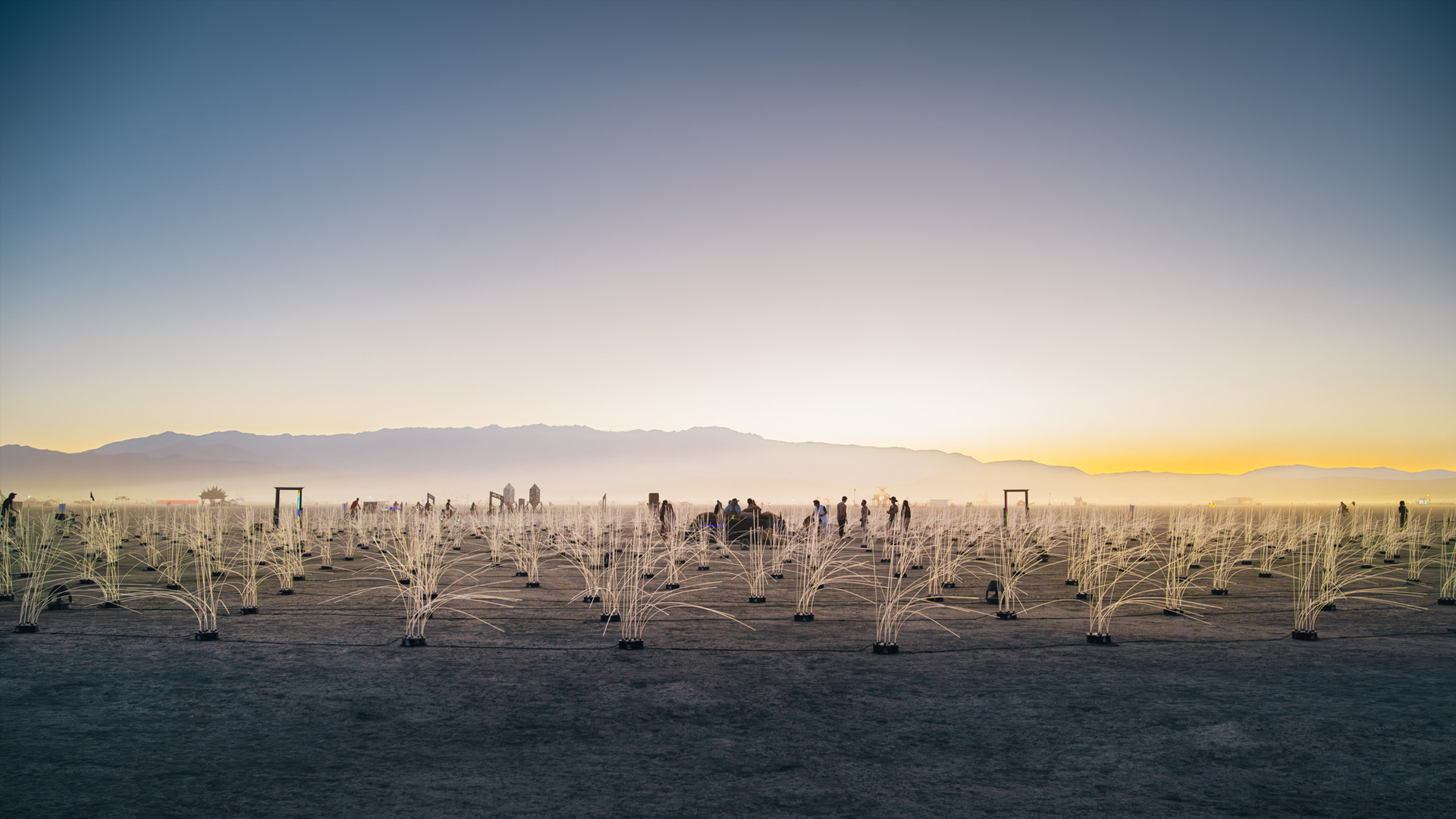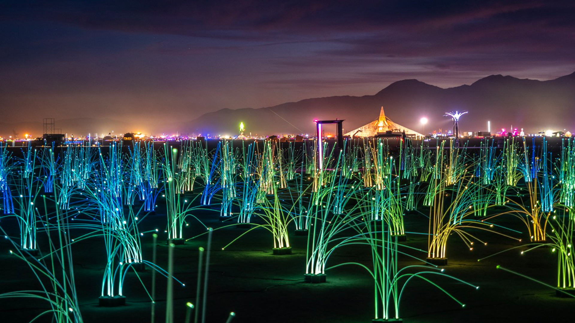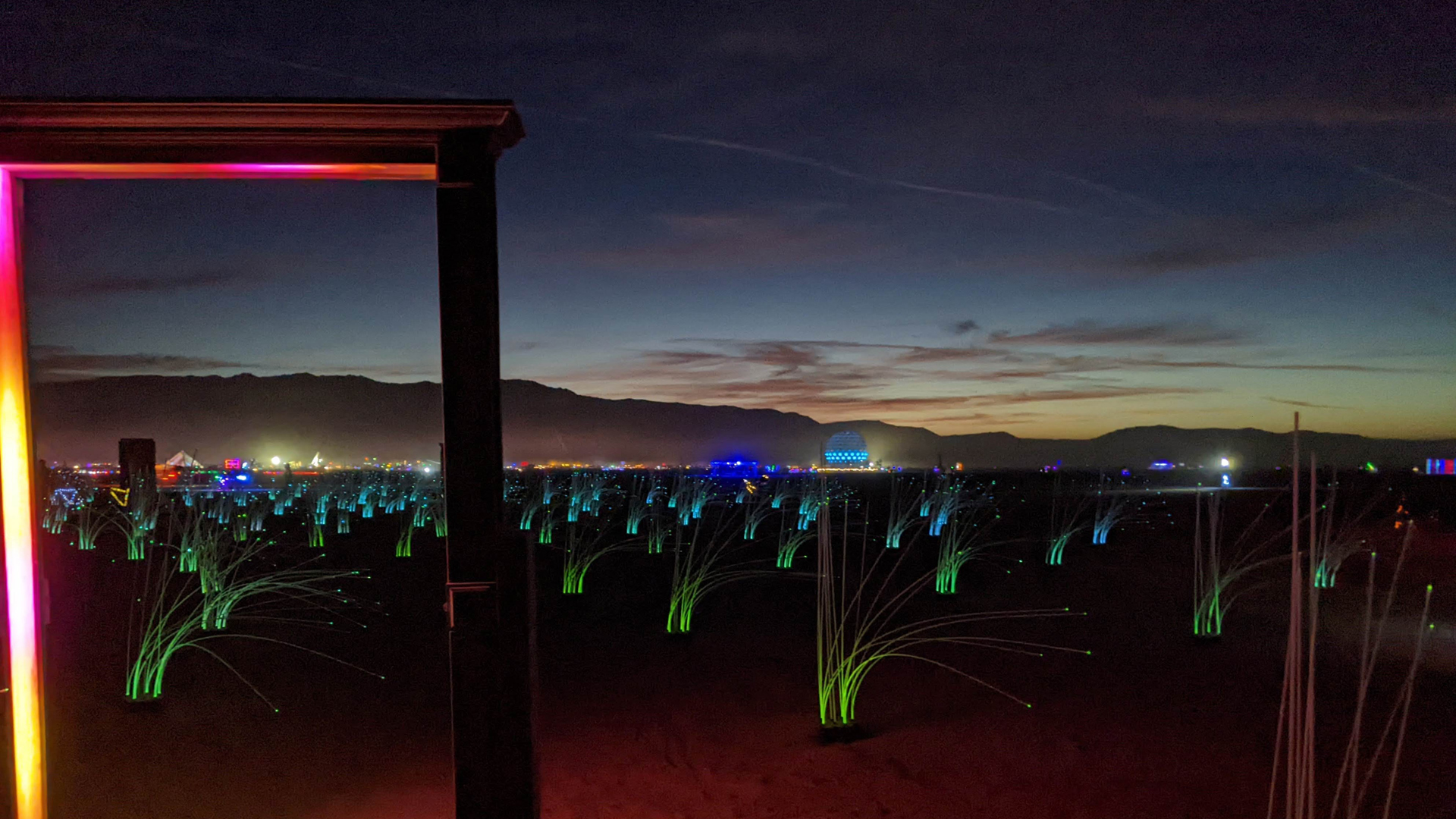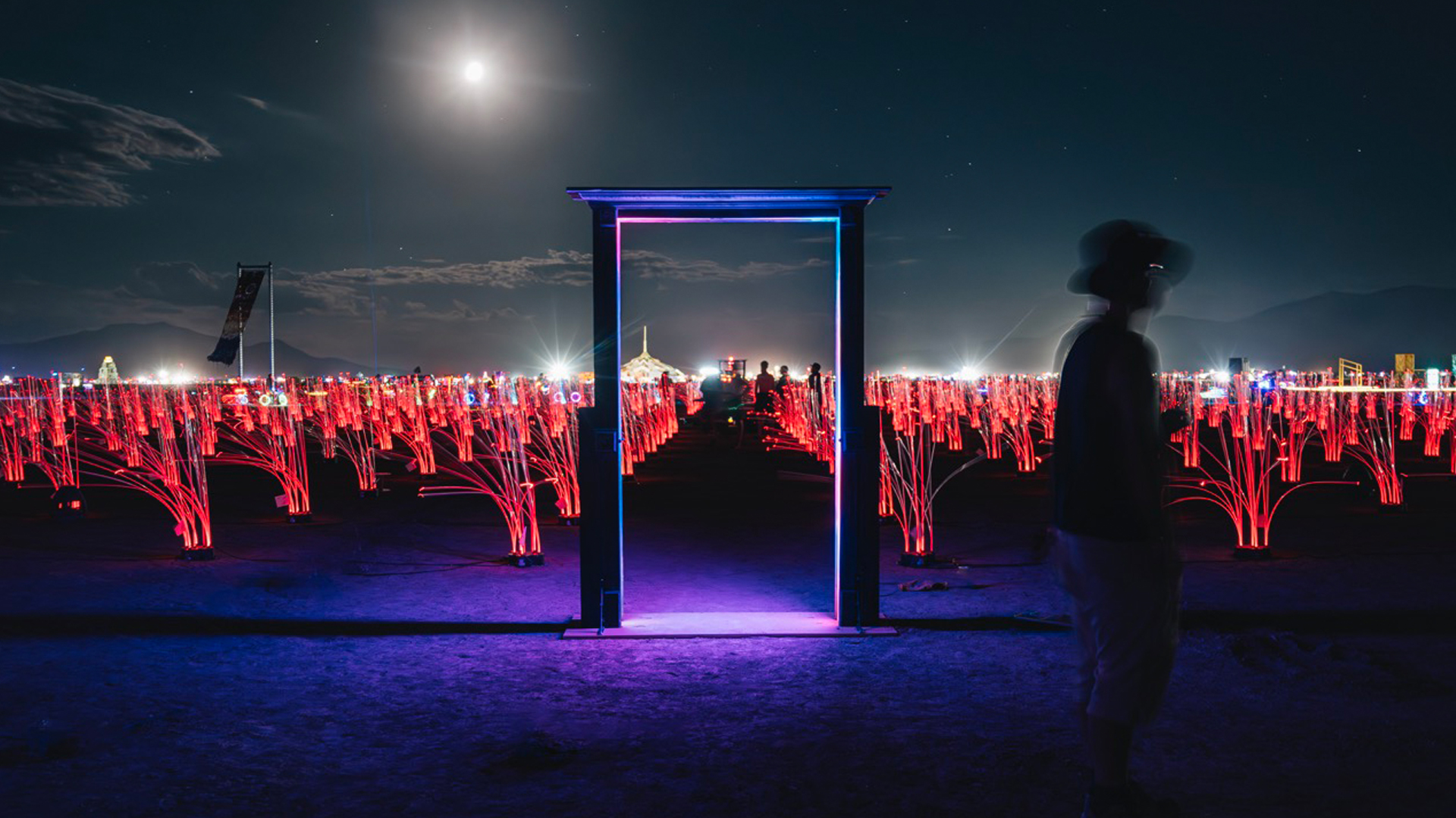 The Prairie of Possibilities uses the power of storytelling to connect us to the collective human experience. Find yourself in a realm between realms as you pass under glowing portals that invite you with the whisper of truths. Shimmering grasses sway gently in the night as serenity’s manifestation under midnight’s velvet curtain.