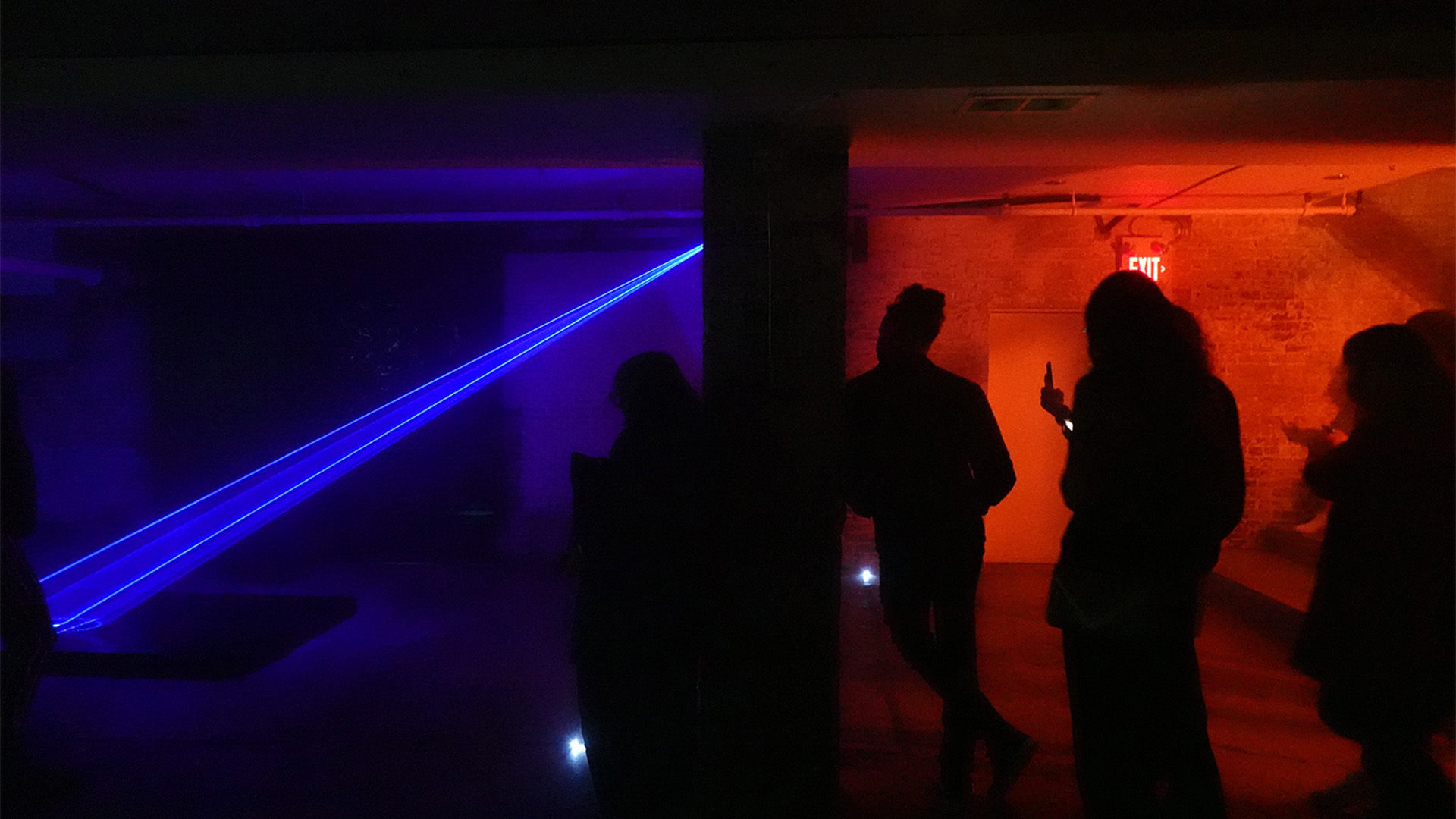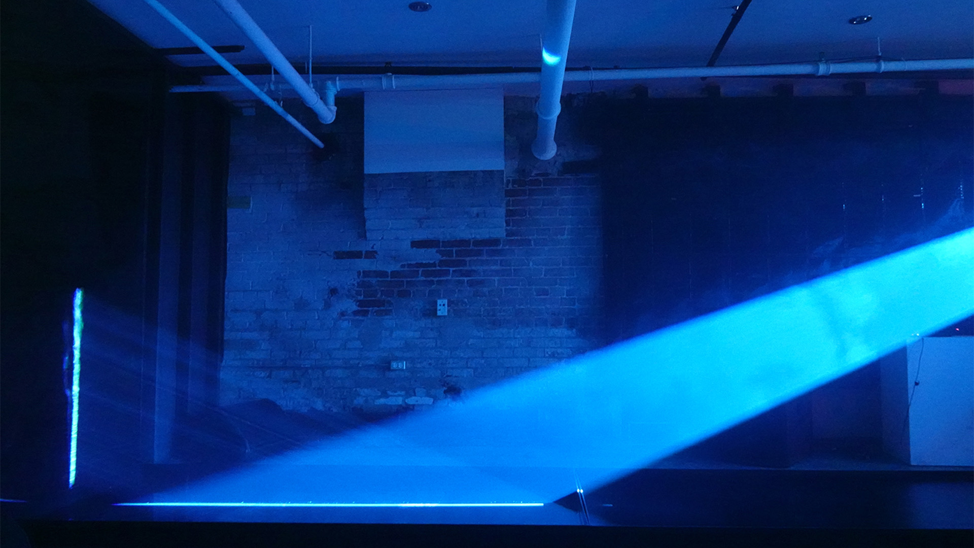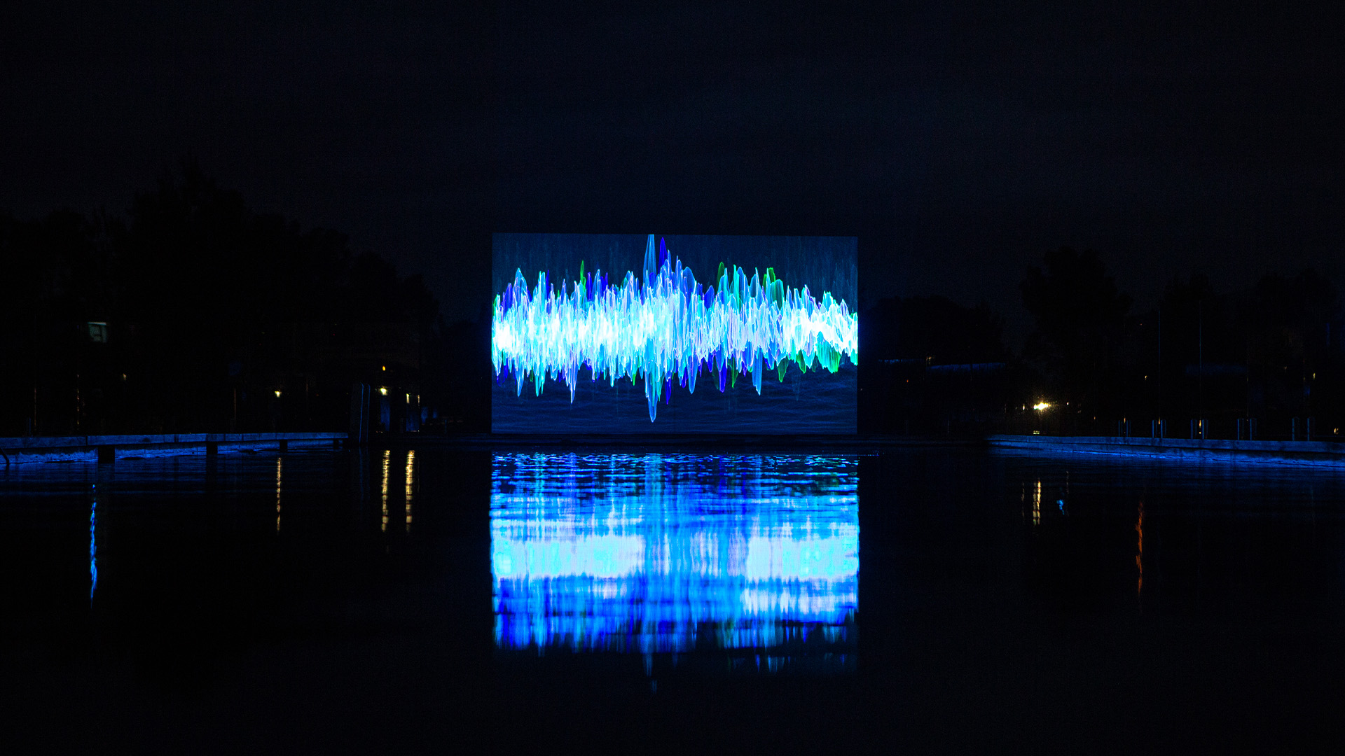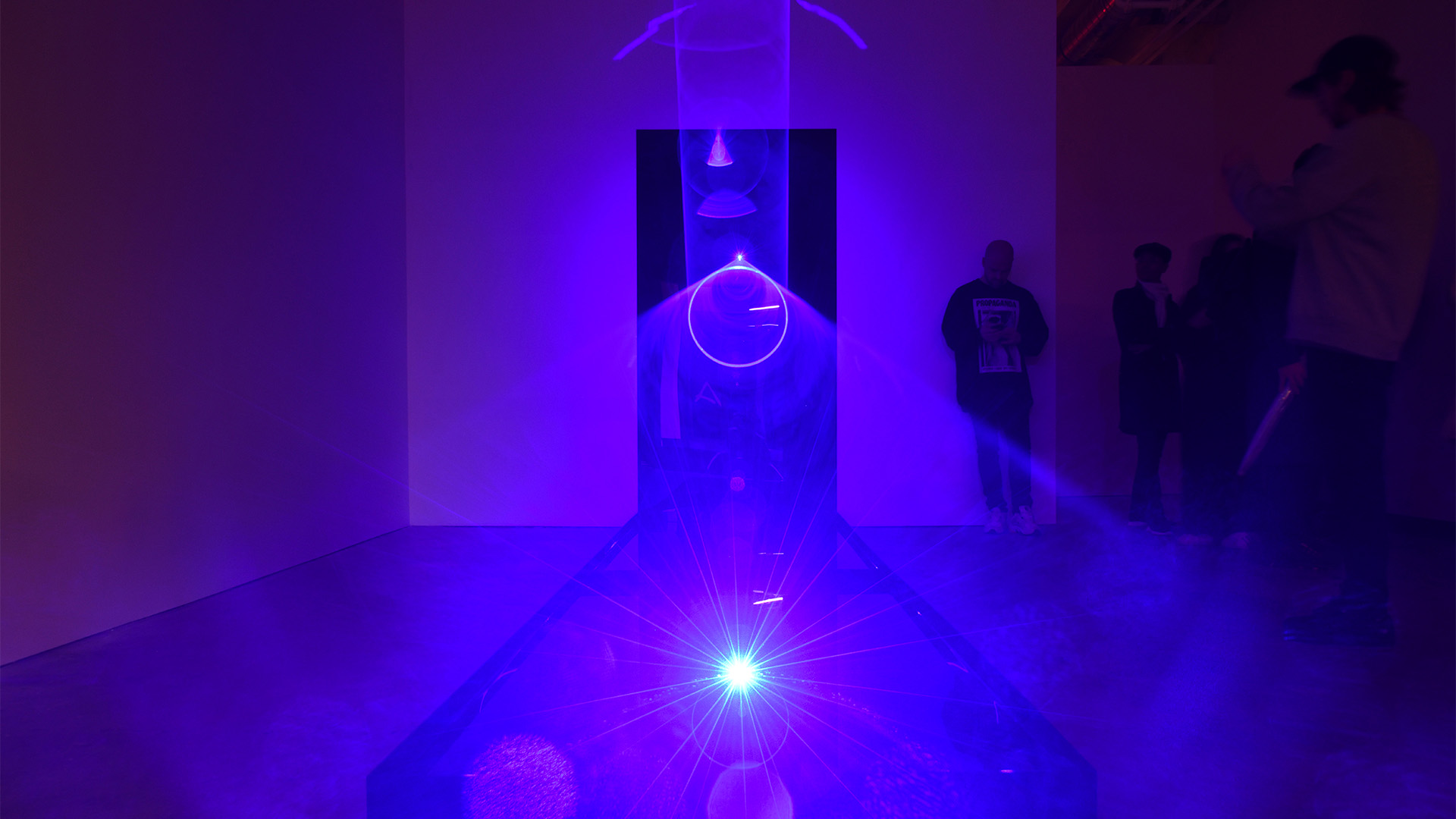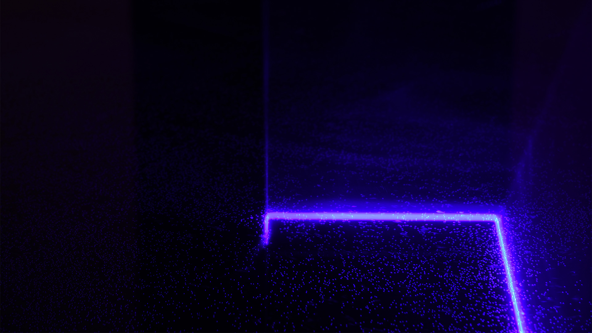 Created by the Montréal-based artists, "Laser Like Water" is a digital art installation intended as a meeting of various elements that together give rise to new perceptions of those same elements only possible as a result of their amalgamation. The piece is composed of brightly-colored lasers and shining ropes that slice through the air, fall apart upon contact with water, and then are reflected and deposited onto a mirrored screen. That ultimately results in the creation of new abstract forms, producing an intense experience - a connection and a synergy within a defined space.
