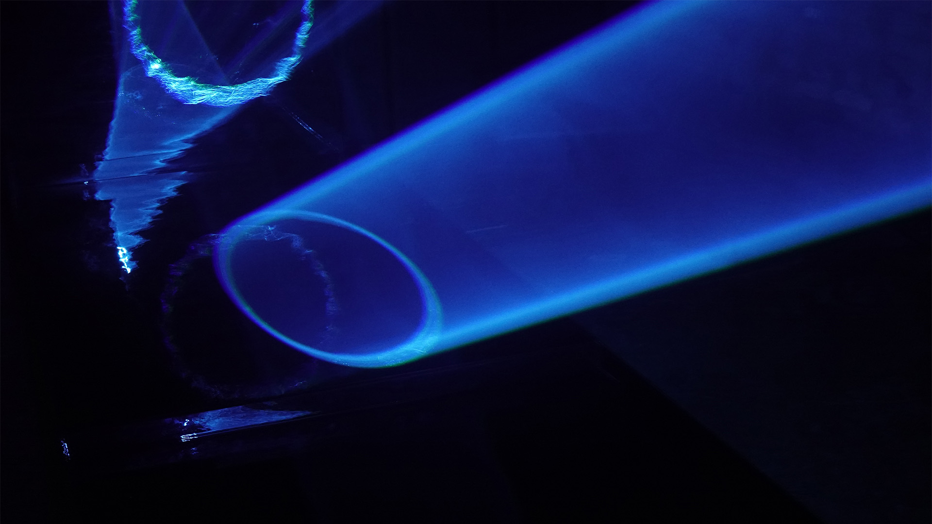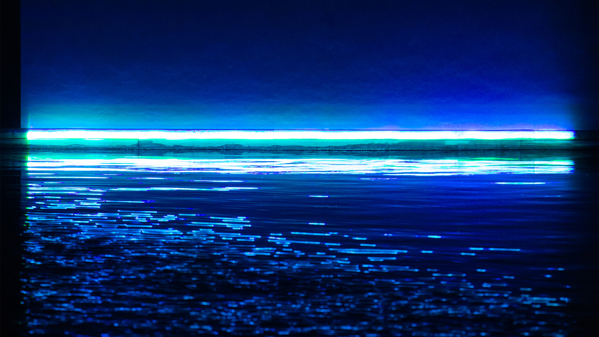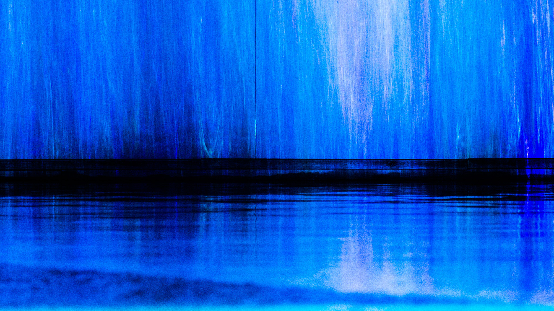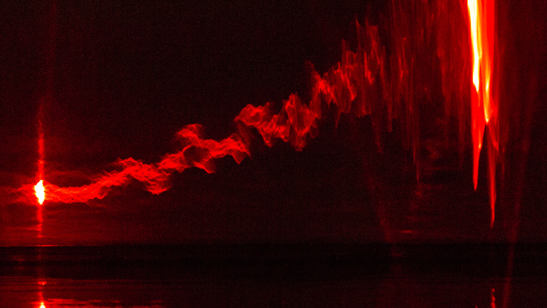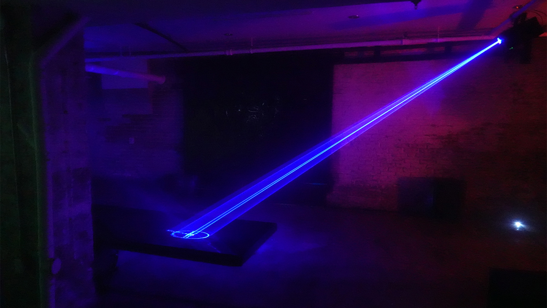Created by the Montréal-based artists, "Laser Like Water" is a digital art installation intended as a meeting of various elements that together give rise to new perceptions of those same elements only possible as a result of their amalgamation. The piece is composed of brightly-colored lasers and shining ropes that slice through the air, fall apart upon contact with water, and then are reflected and deposited onto a mirrored screen. That ultimately results in the creation of new abstract forms, producing an intense experience - a connection and a synergy within a defined space.