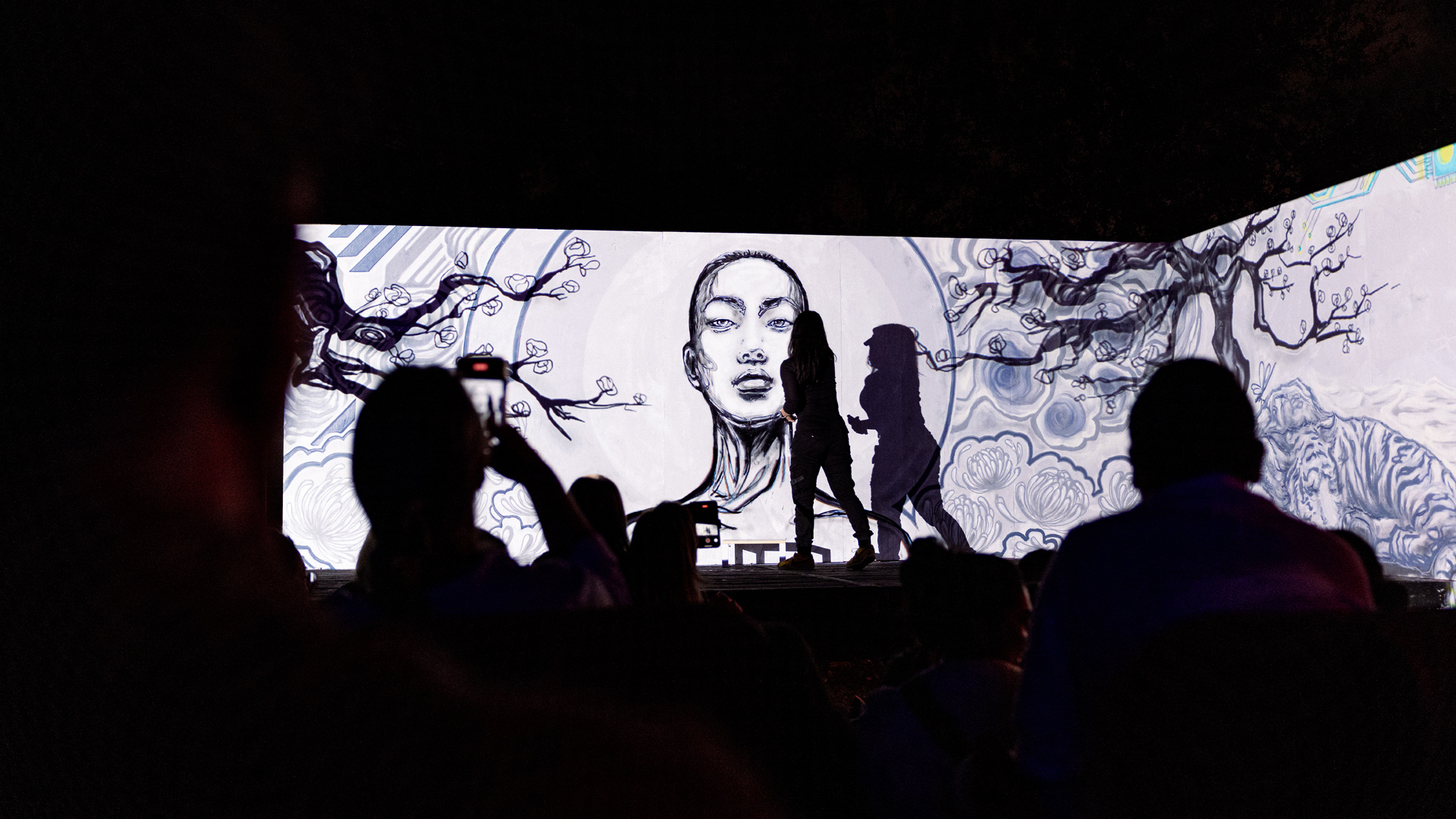 In a world that can feel fraught with disengagement and detachment, Press Play invites you on an immersive journey to reconnect with your innate creative energy. Step into the boombox of simpler days past and experience a story about discovering power through self-discovery, cultural identity, and the joining of old and new. This exhibition uses layers of light, art, and sound to bring you inside the artist's large-scale paintings, inspired by traditional Korean folk art and nostalgic synthwave beats. Above all, it is an invitation to embrace playfulness and presence, and take a moment to share in the energy of pure expression — with the hopes that you "Press Play" on your own creative spirit. Sounds by Rogue VHS and Elijah Gee.