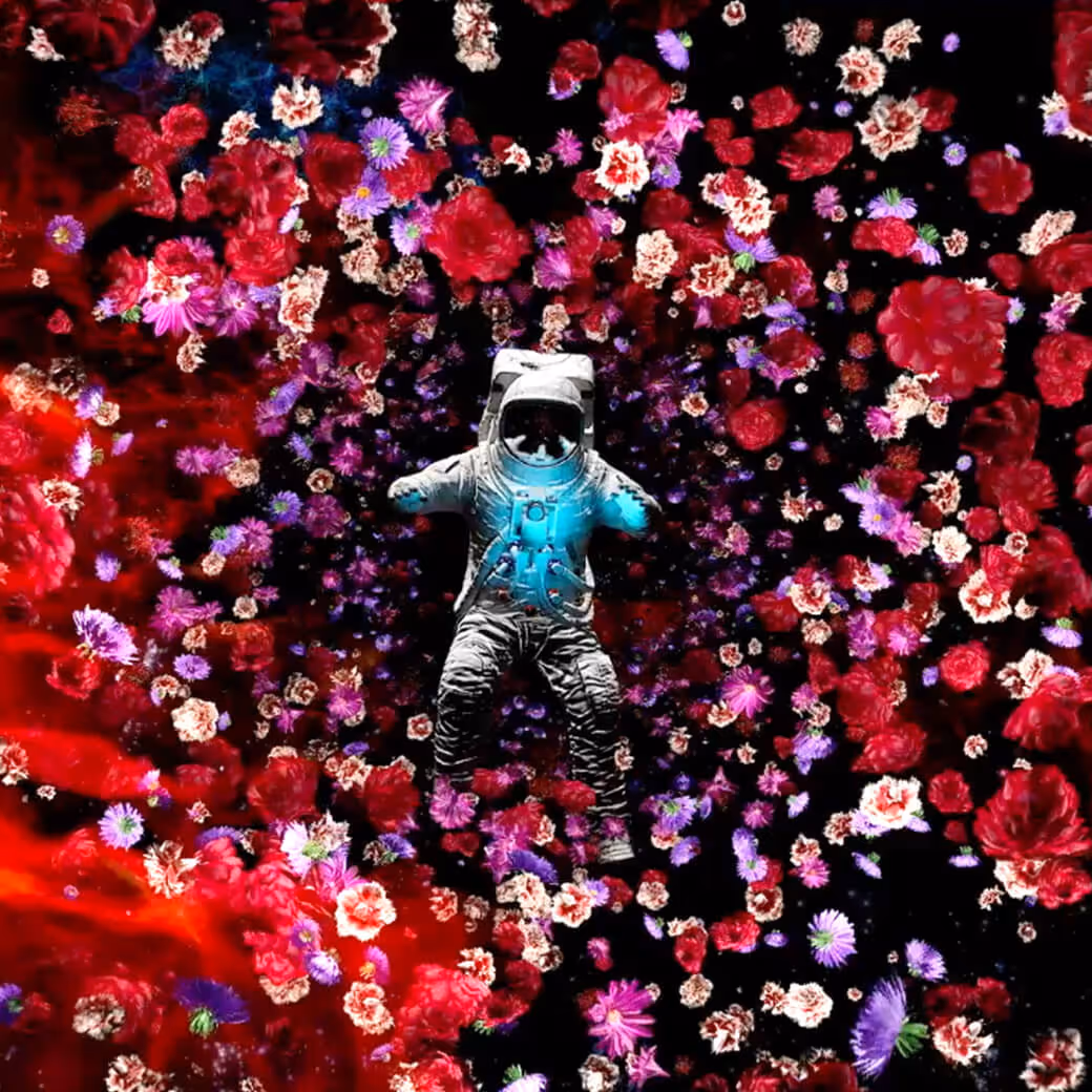 Ascendance is a projection of an astronaut severed from his mothership. As his oxygen levels fade, he drifts through a poetic cosmos of vibrant flowers, fluttering butterflies, and wistful hallucinations. The installation offers a tranquil space to reflect on the fragility and fleeting nature of human existence.