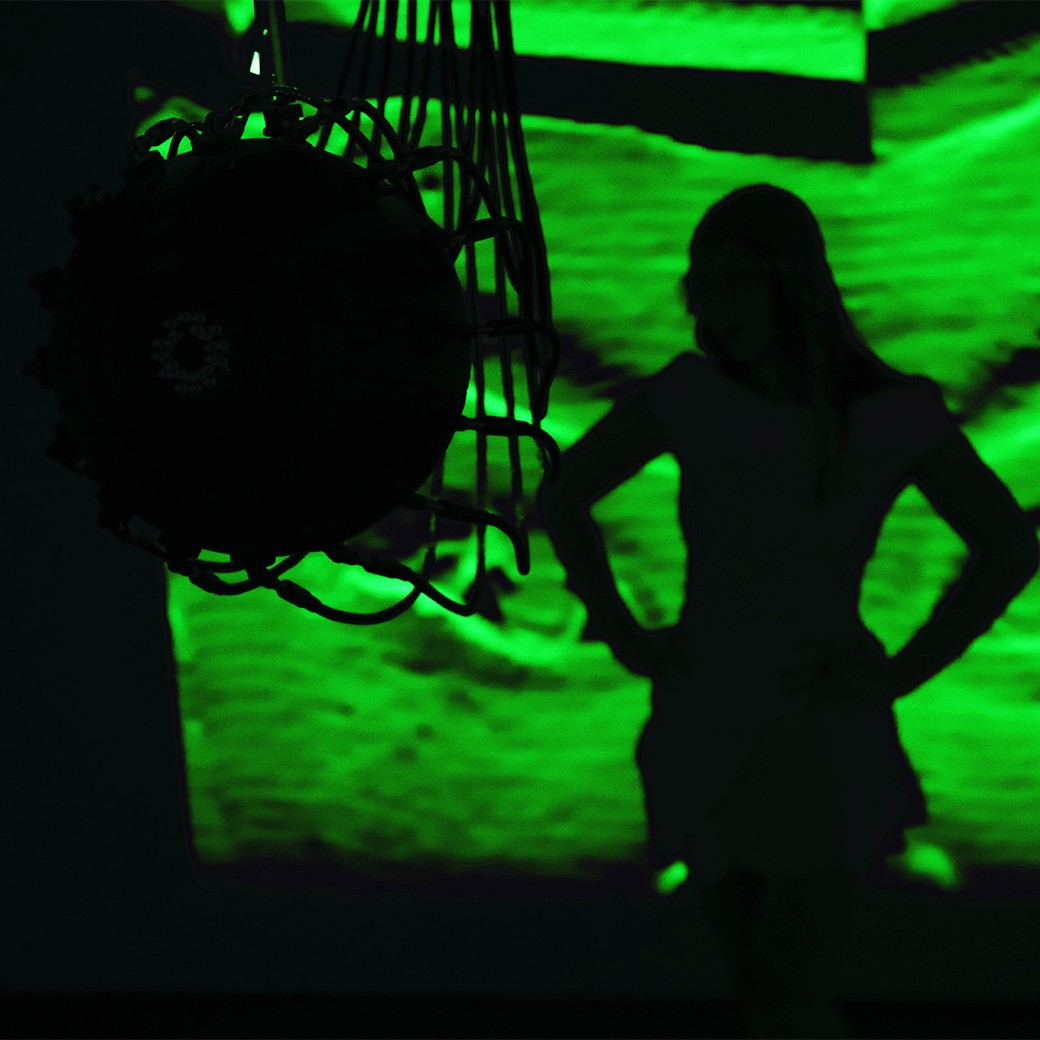 This immersive exhibition explores the intimate space where sound and color collide in a dynamic, ever-changing interplay of analog and digital formats. Guests will be able to immerse their senses and have their likeness captured, magnified, and transformed in real-time through a live oscilloscope feed, turning human presence into pulsating rasterized visuals. Each position triggers a unique soundscape and visual element that evolves alongside the image, forging a deeply personal and interactive experience.