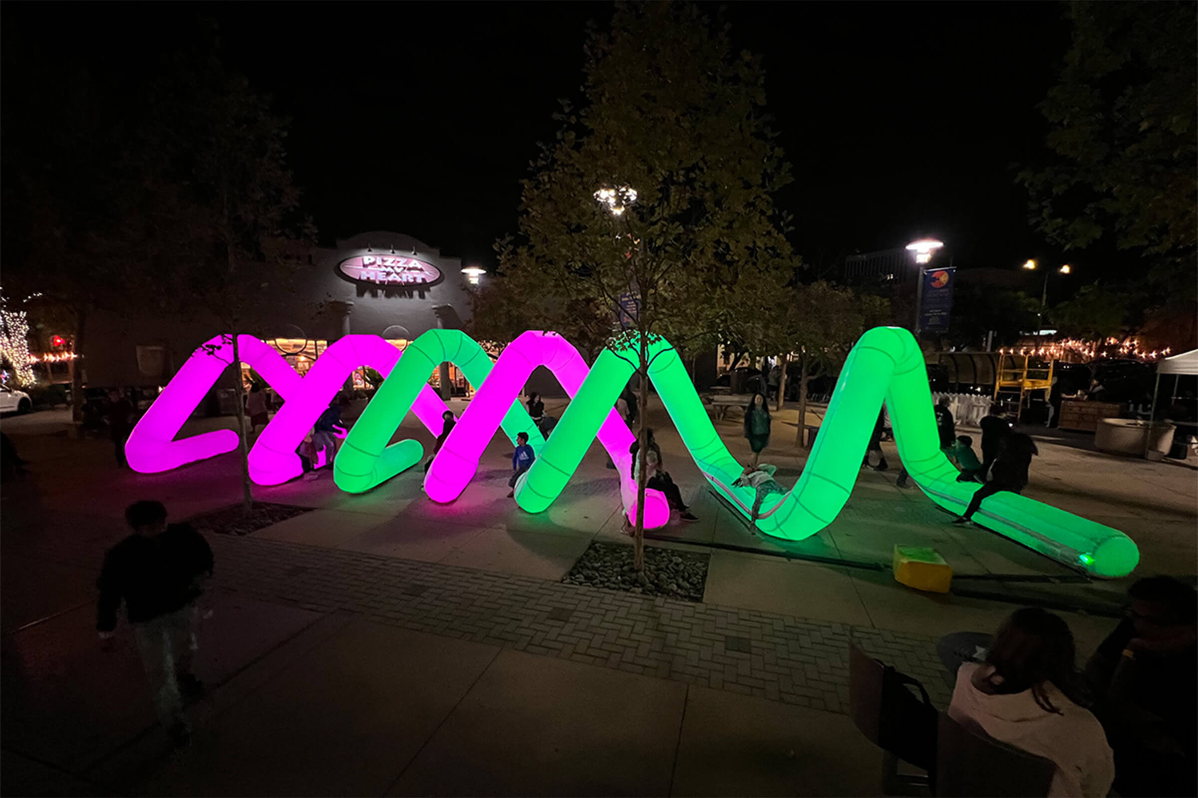 Would you like to swing on a star? APOGEE is a cool place to swing, dream, and lose yourself in hypnotic, space-inspired visuals. Wrapped in vibrant, projection-mapped animations and pulsing with an 80s synthwave-inspired soundtrack, APOGEE invites visitors to play, connect, and swing through space.