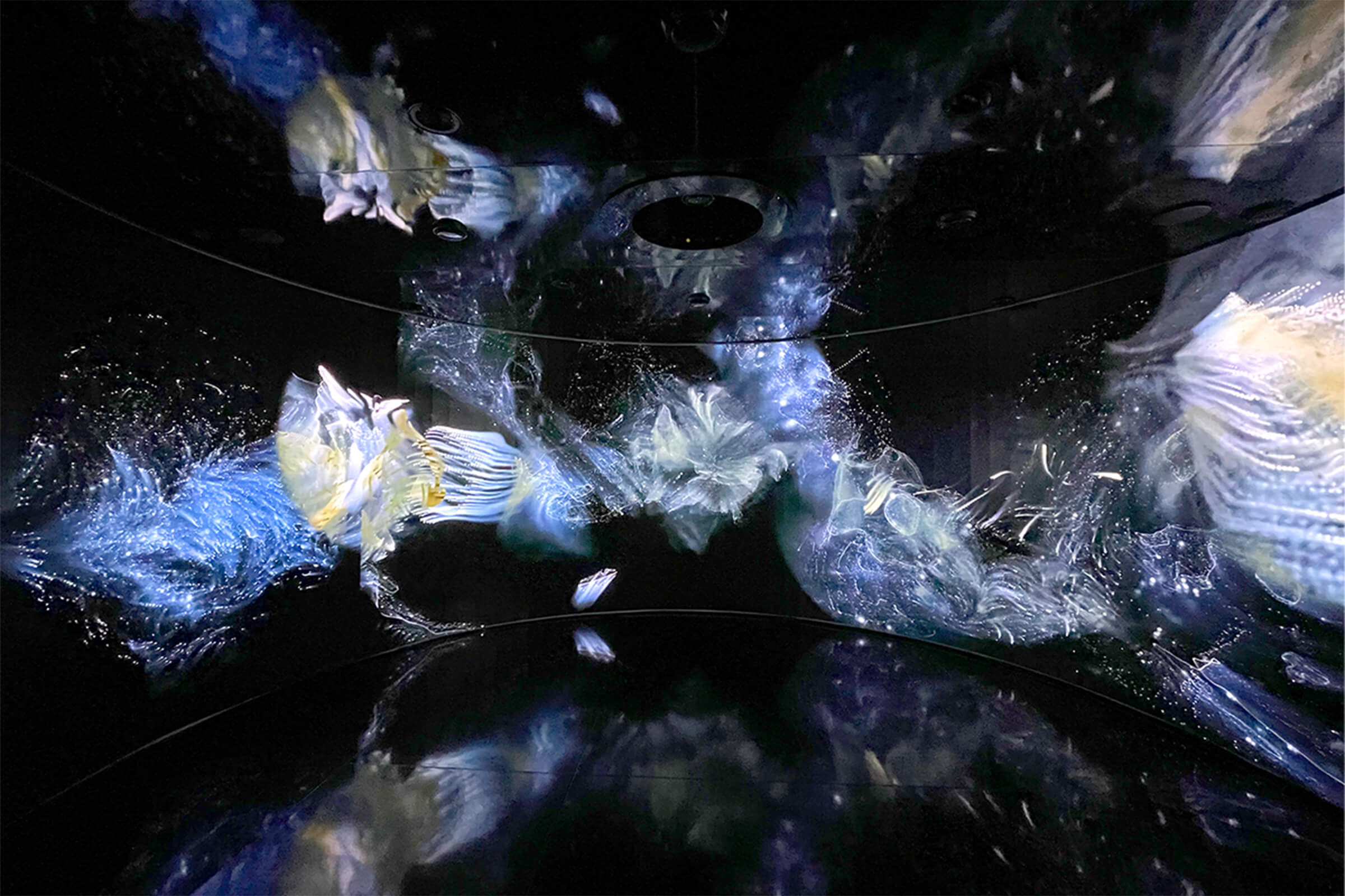 Ascendance is a projection of an astronaut severed from his mothership. As his oxygen levels fade, he drifts through a poetic cosmos of vibrant flowers, fluttering butterflies, and wistful hallucinations. The installation offers a tranquil space to reflect on the fragility and fleeting nature of human existence.